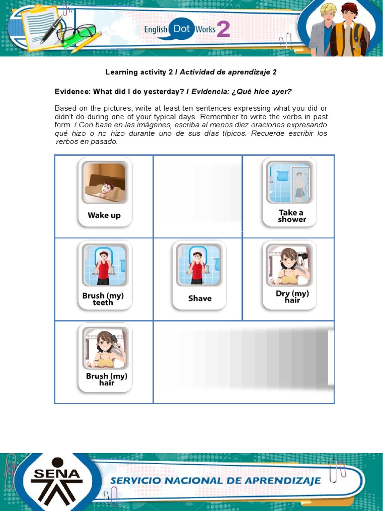 Evidence: What did I do yesterday? / Evidencia: ¿Qué hice ayer?