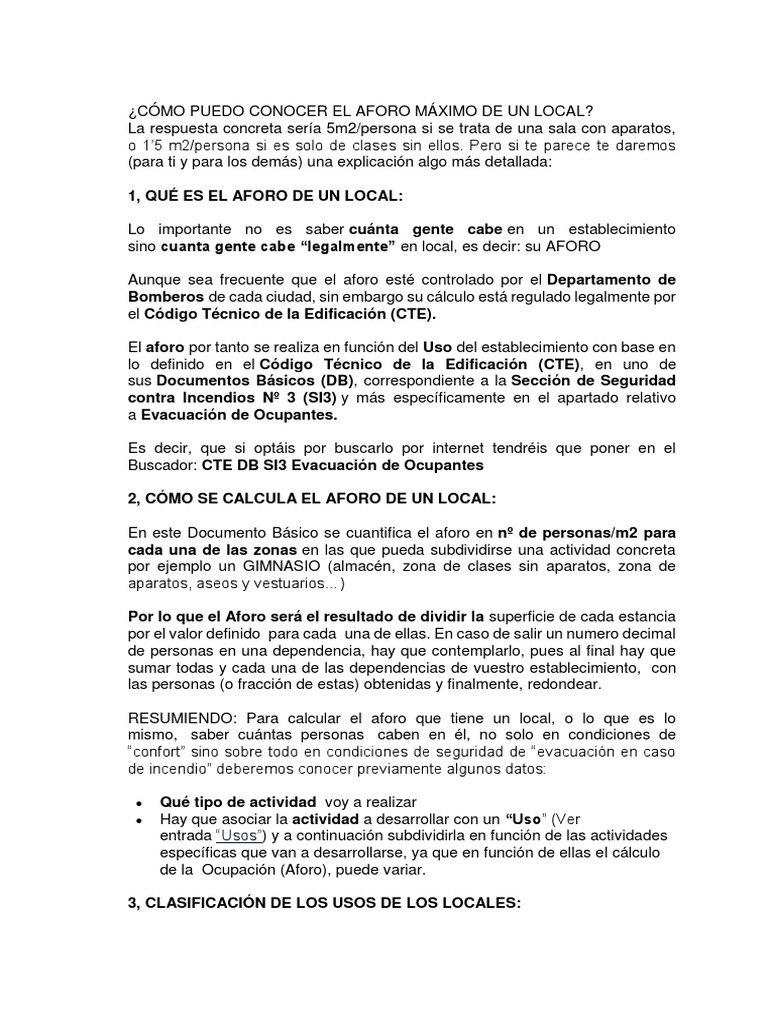 1, QUÉ ES EL AFORO DE UN LOCAL: