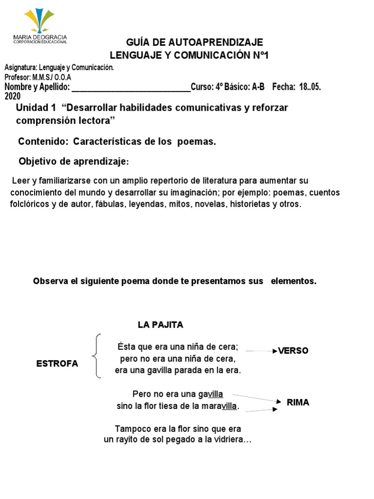 Nombre y Apellido: ______________________________Curso: 4° Básico: A-B Fecha: 18..05.