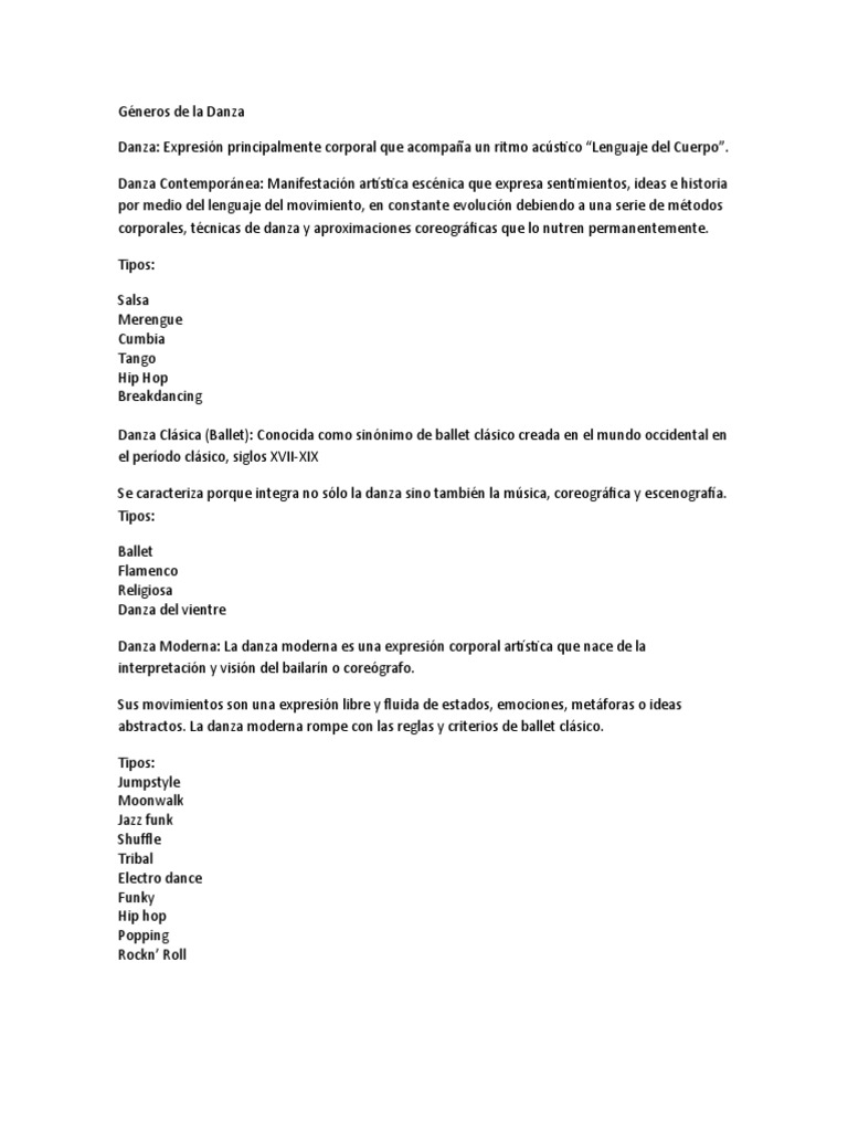 Géneros de la Danza
