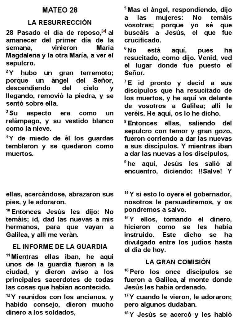 MATEO 28 Mas el ángel, respondiendo, dijo