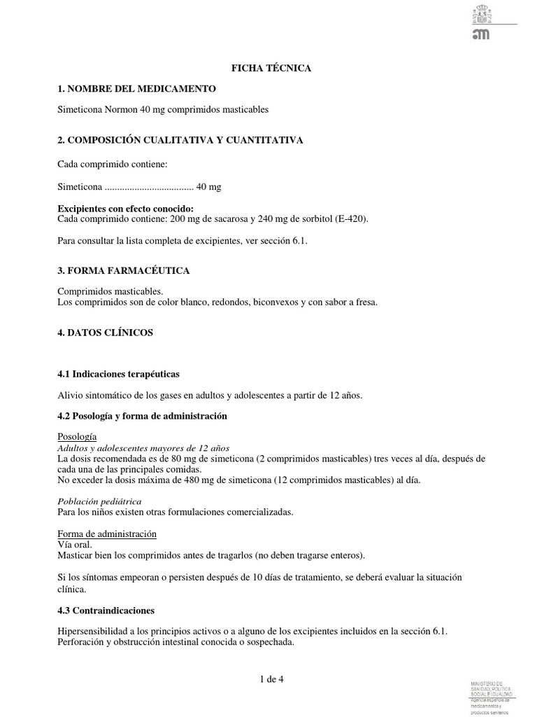 No exceder la dosis máxima de 480 mg de simeticona (12 comprimidos masticables) al día.