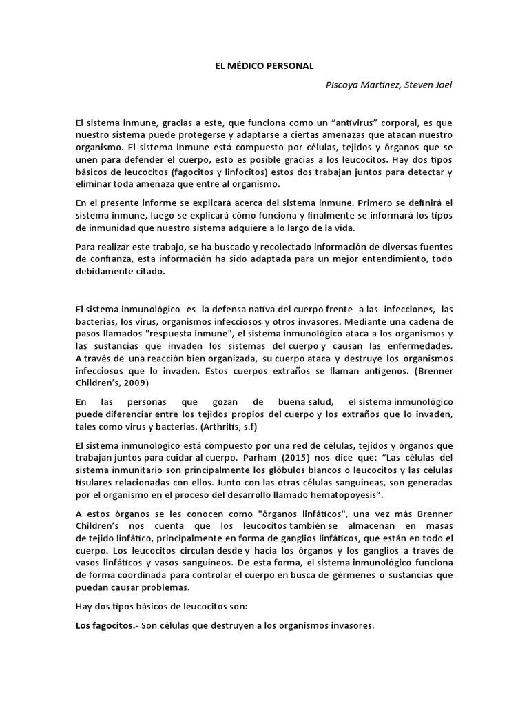 En el presente informe se explicará acerca del sistema inmune. Primero se definirá el