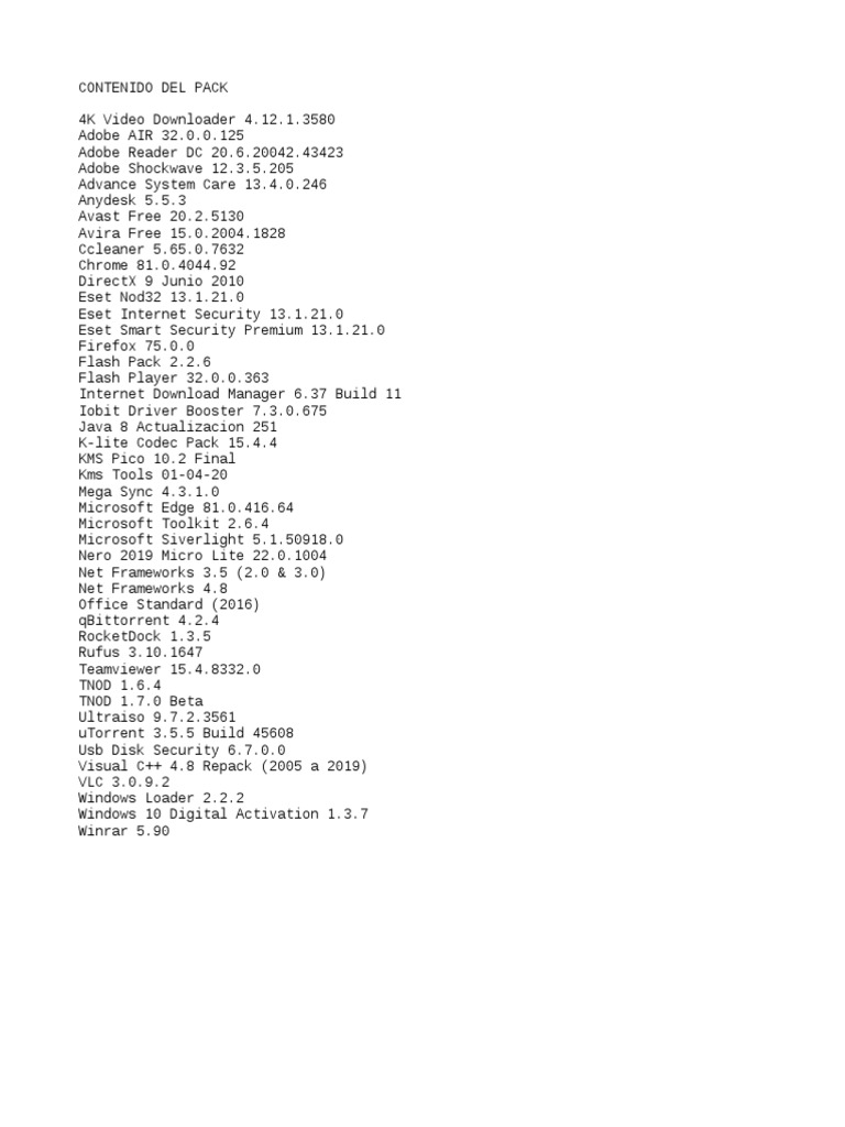 CONTENIDO DEL PACK