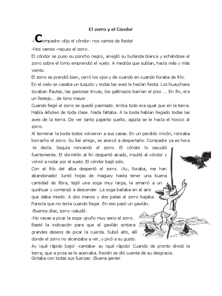 fuertemente. El dormilón al fin despertó airado, insultó al cóndor y