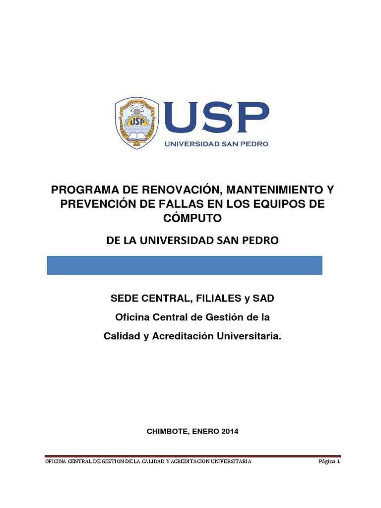 prevención de fallas en los equipos de cómputo de la universidad san pedro