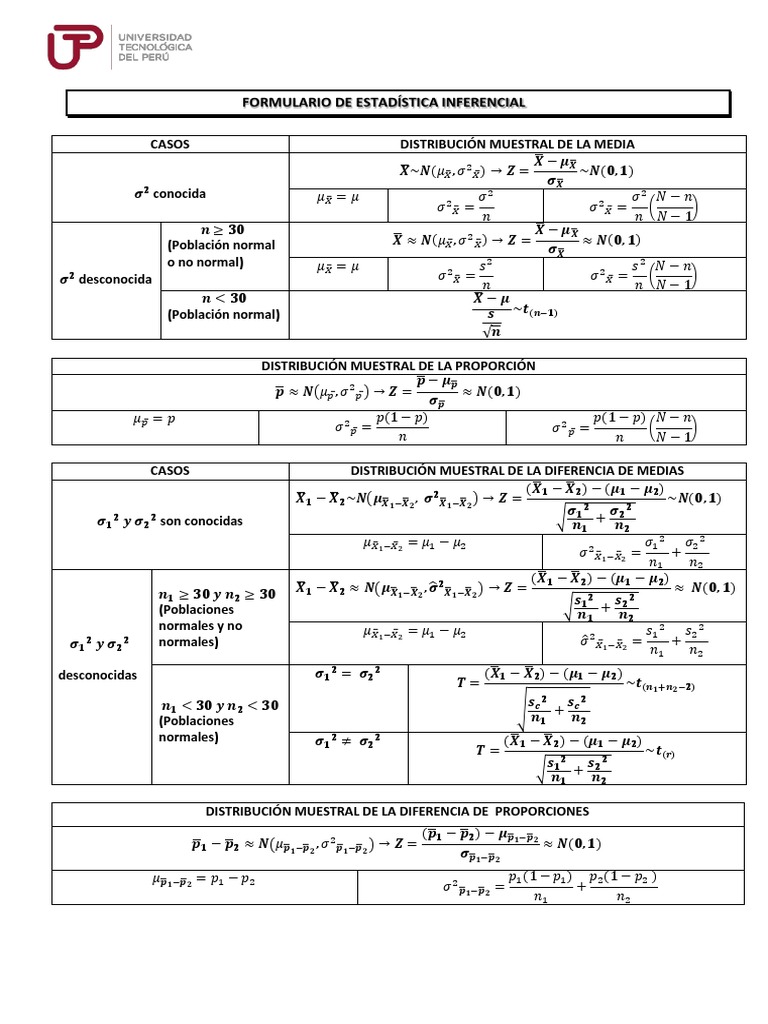 FORMULARIO DE ESTADÍSTICA INFERENCIAL