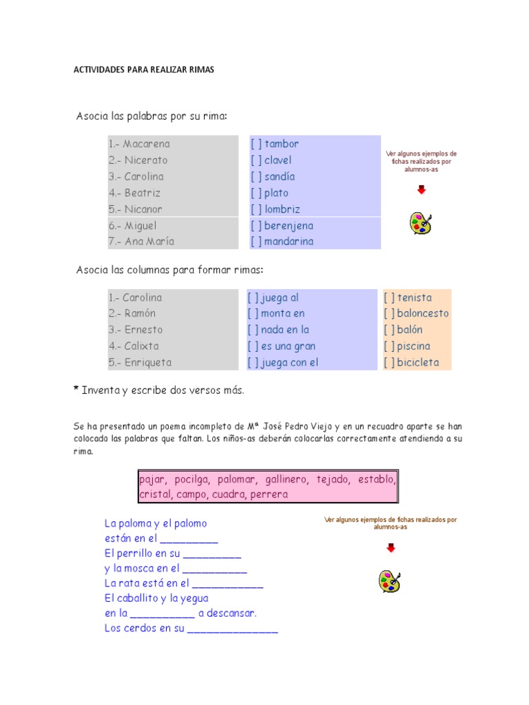 ACTIVIDADES PARA REALIZAR RIMAS