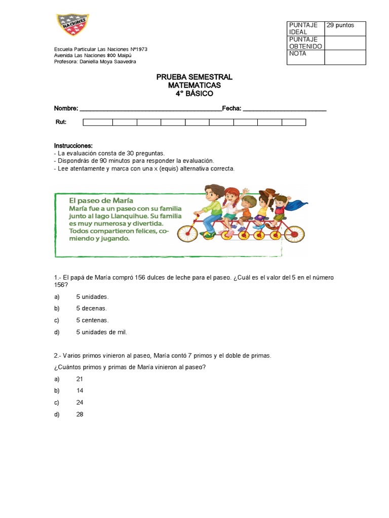 2.- Varios primos vinieron al paseo, María contó 7 primos y el doble de primas.