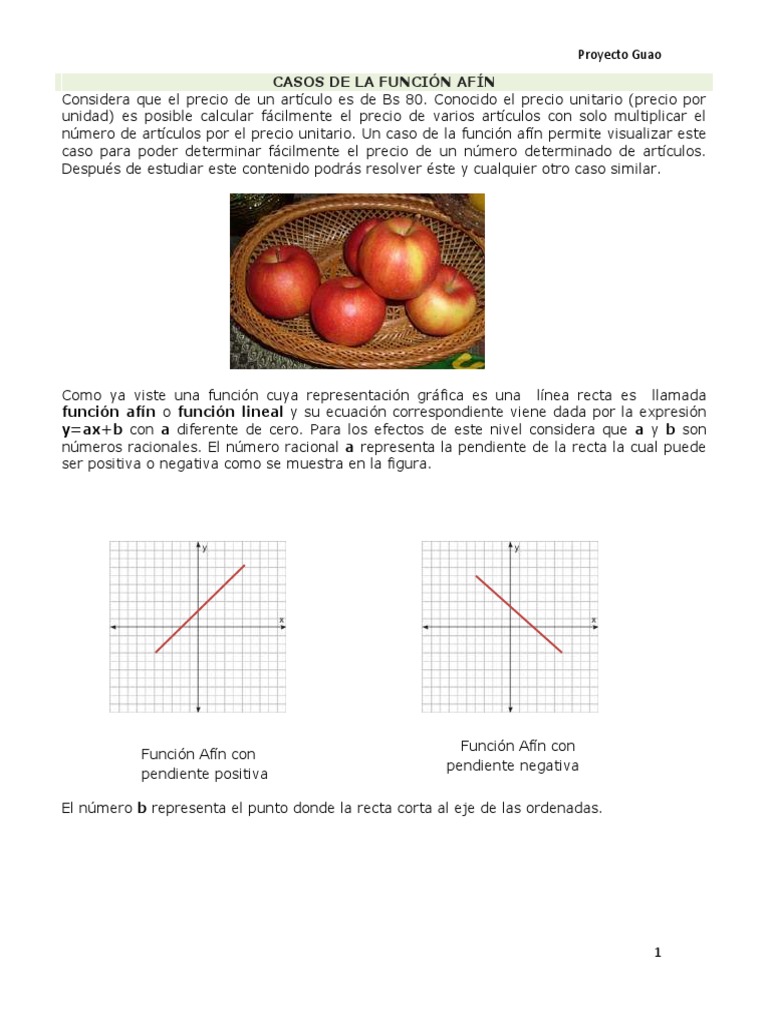 número de artículos por el precio unitario. Un caso de la función afín permite visualizar este