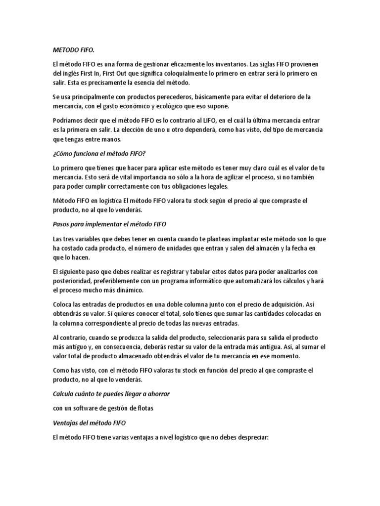 Método FIFO en logística El método FIFO valora tu stock según el precio al que compraste el