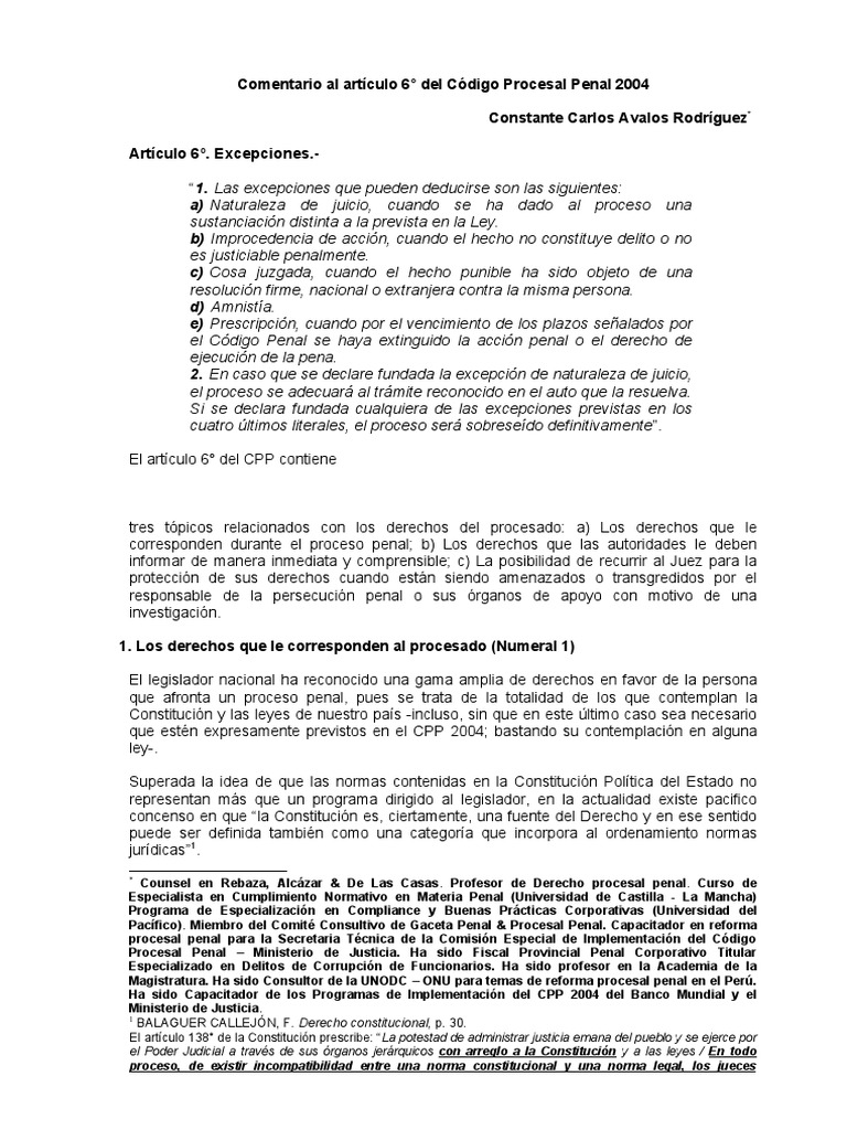 Comentario al artículo 6° del Código Procesal Penal 2004