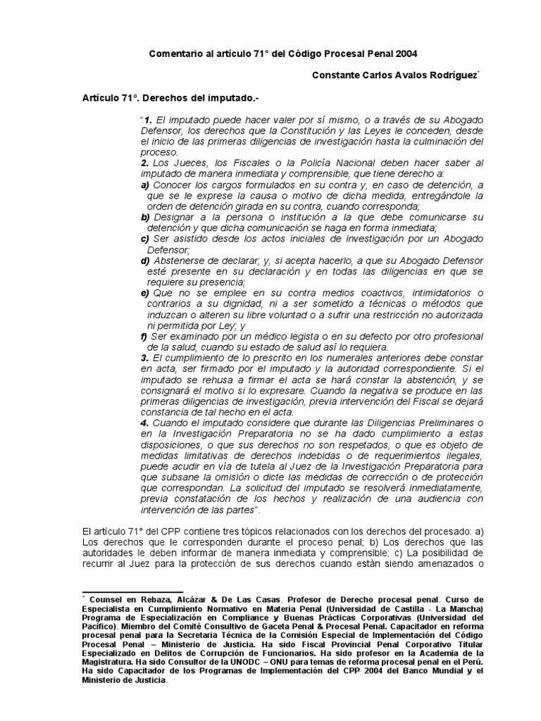 Comentario Artículo 71 CPP