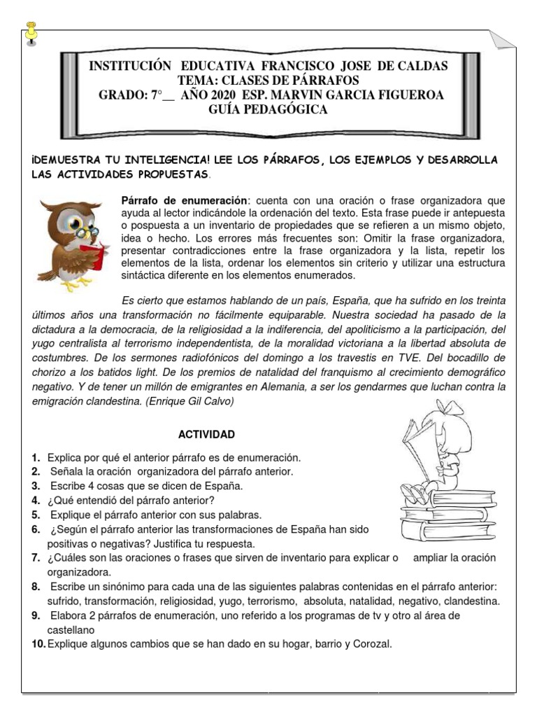 1. Explica por qué el anterior párrafo es de enumeración.