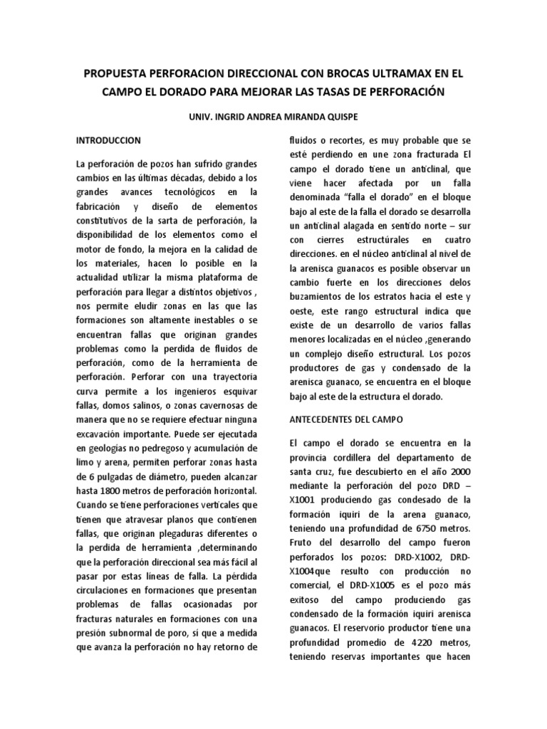PROPUESTA PERFORACION DIRECCIONAL CON BROCAS ULTRAMAX EN EL