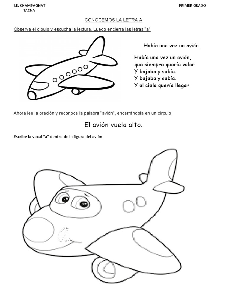 Escribe la vocal “a” dentro de la figura del avión