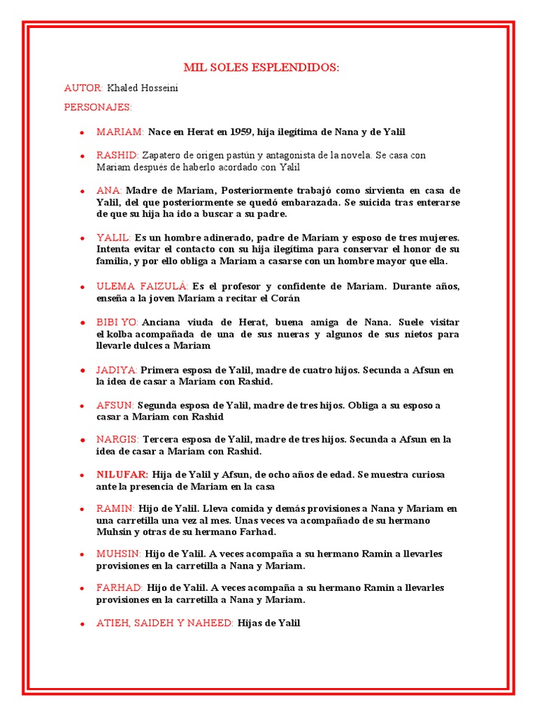 La novela comienza con la presentación del personaje de Mariam, una niña de cinco años