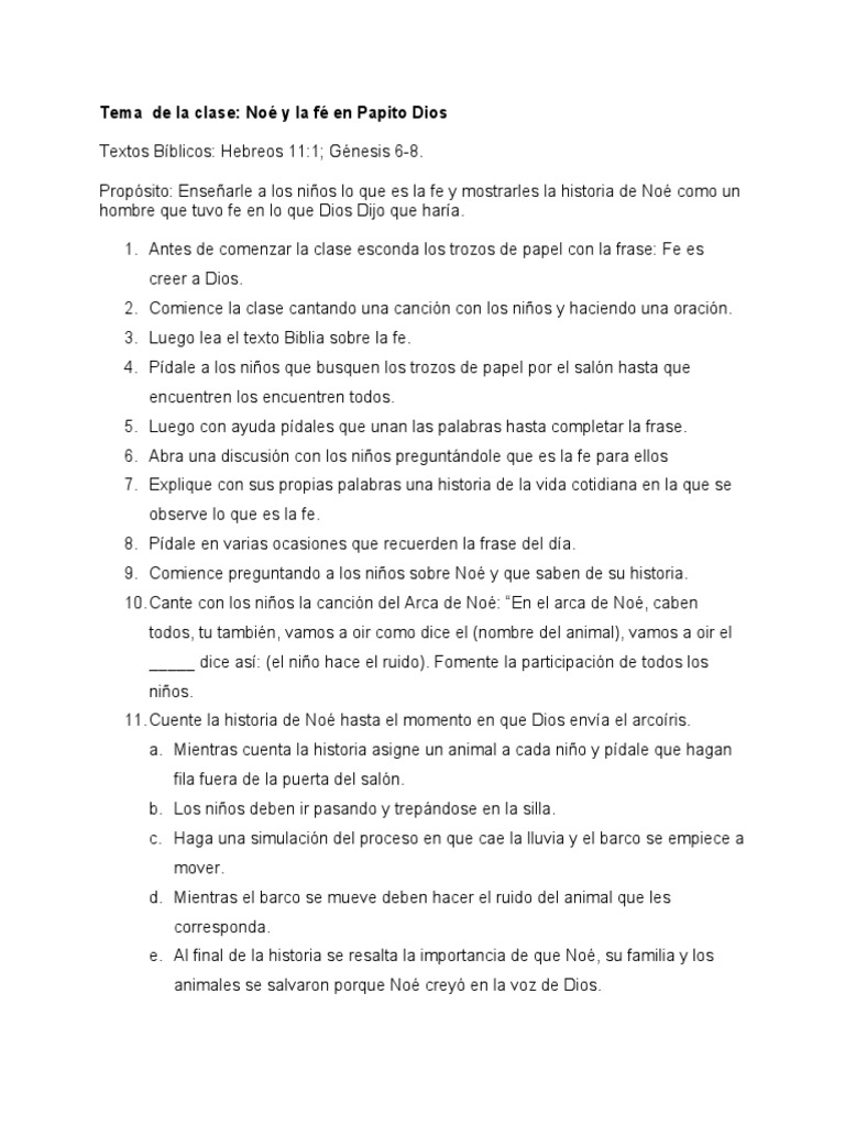 Tema de la clase: Noé y la fé en Papito Dios