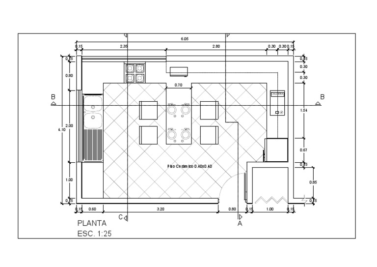 Planos y Medidas de Cocinas en Planta