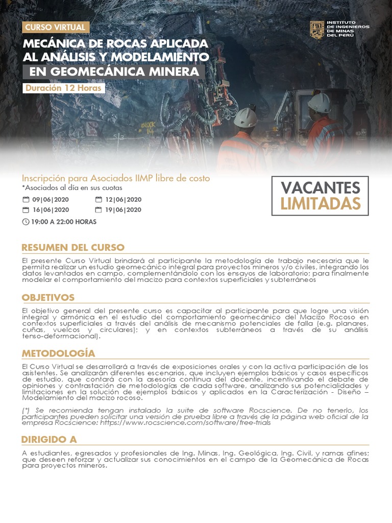 A estudiantes, egresados y profesionales de Ing. Minas, Ing. Geológica, Ing. Civil, y ramas afines;