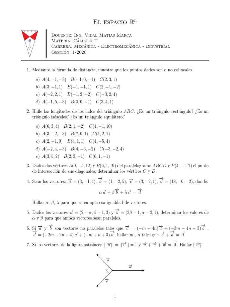 1. Mediante la fórmula de distancia, muestre que los puntos dados son o no colineales.