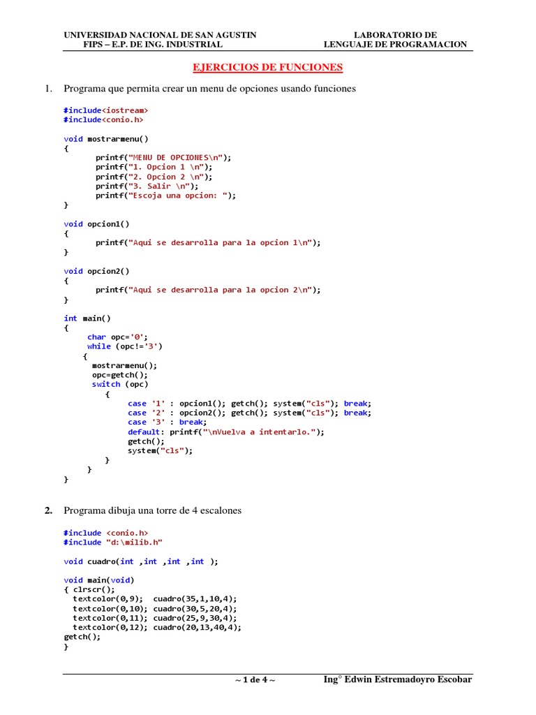 1. Usando funciones resolver cada uno de los siguientes programas en un menú de opciones: