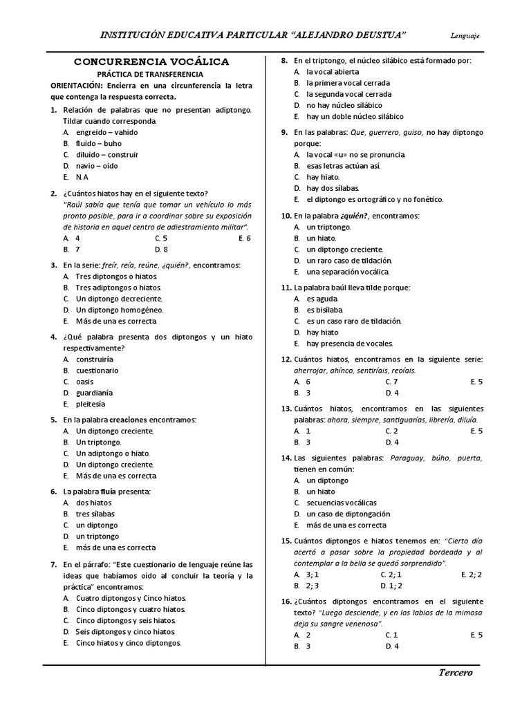 A. Un diptongo creciente. A. 1 C. 2 E. 5