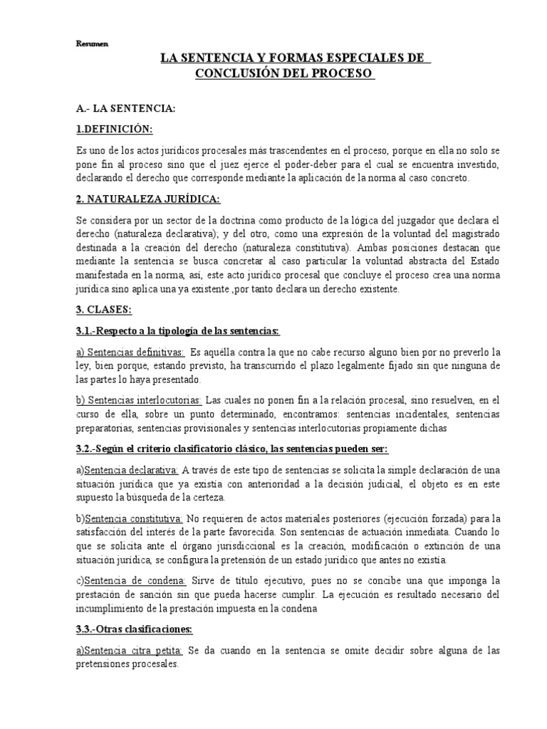LA SENTENCIA Y FORMAS ESPECIALES DE