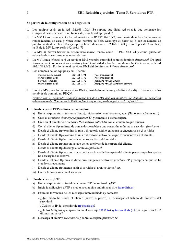 1 SRI. Relación ejercicios. Tema 5. Servidores FTP.
