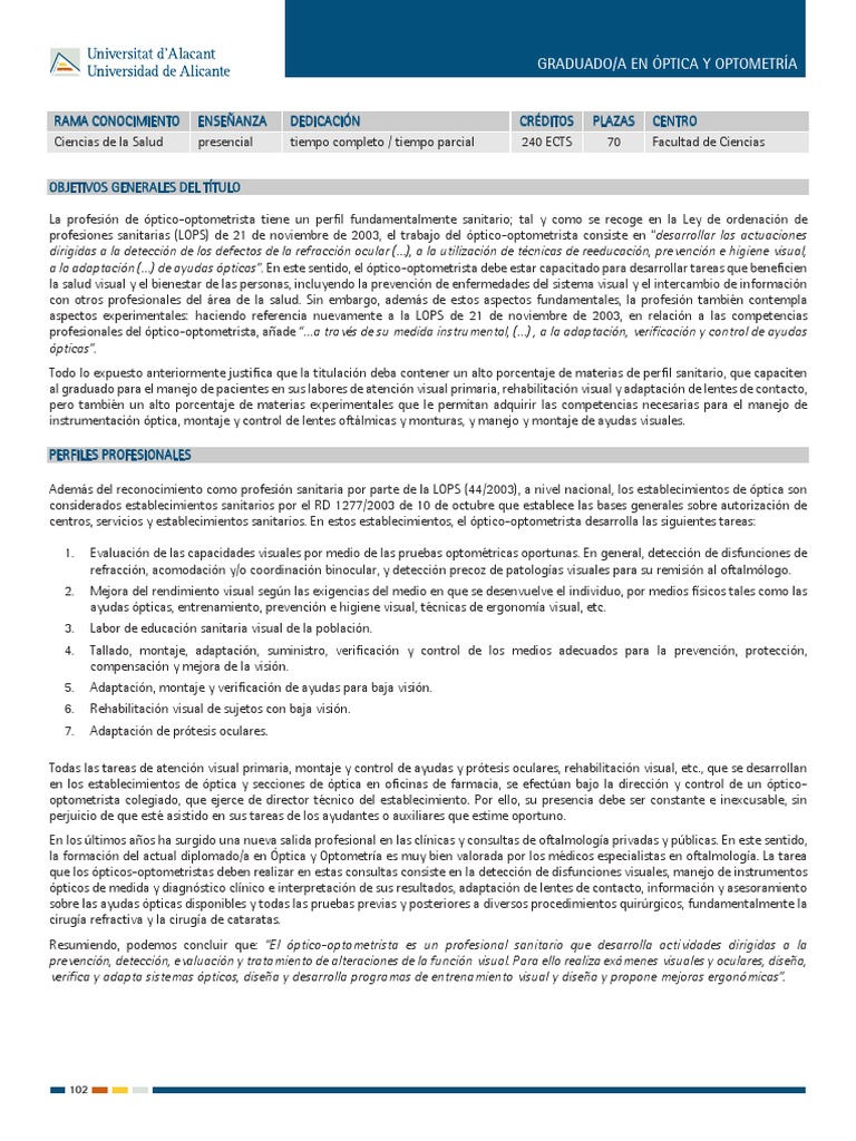 profesiones sanitarias (LOPS) de 21 de noviembre de 2003, el trabajo del óptico-optometrista consiste en “desarrollar las actuaciones