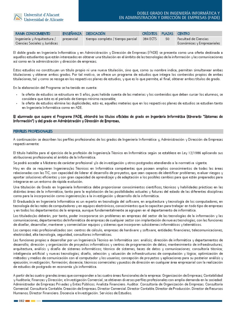 El doble grado en Ingeniería Informática y en Administración y Dirección de Empresas (I2ADE) se presenta como una oferta destinada a