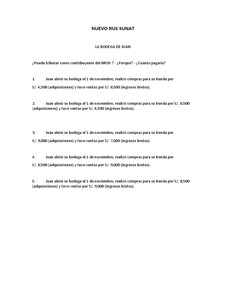 1. En el mes de abril un contribuyente que pertenece al RER obtuvo ingresos por S/.