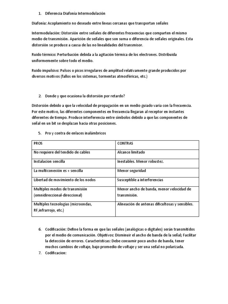 6. Codificación: Define la forma en que las señales (analógicas o digitales) serán transmitidos
