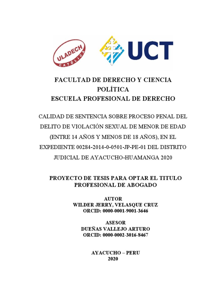 Para realizar el proyecto de investigación titulado: CALIDAD DE SENTENCIA