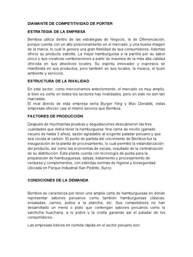 Bembos utiliza dentro de las estrategias de Negocio, la de Diferenciación,