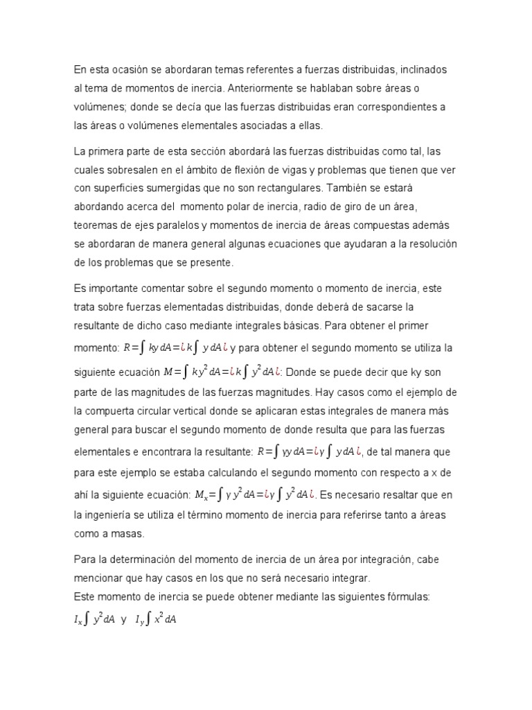En esta ocasión se abordaran temas referentes a fuerzas distribuidas, inclinados