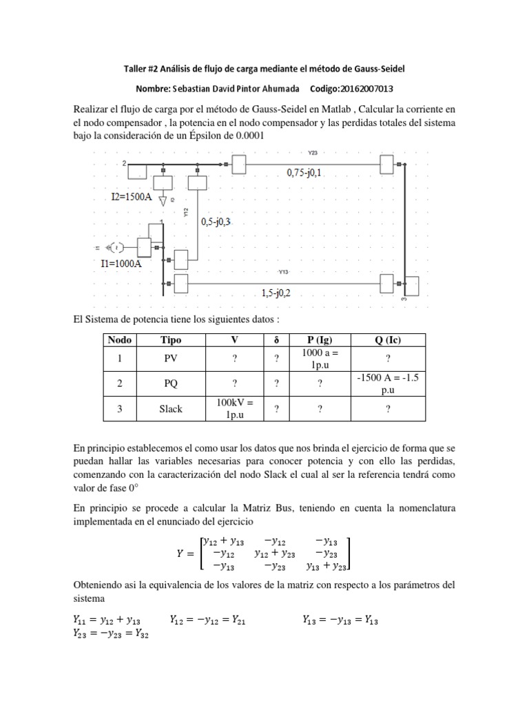 Taller #2 Análisis de flujo de carga mediante el método de Gauss-Seidel