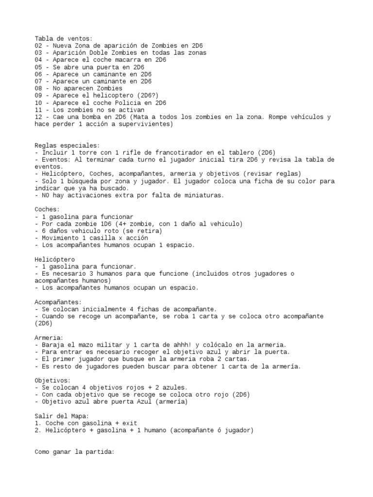 - Por cada zombie 1D6 (4+ zombie, con 1 daño al vehiculo)