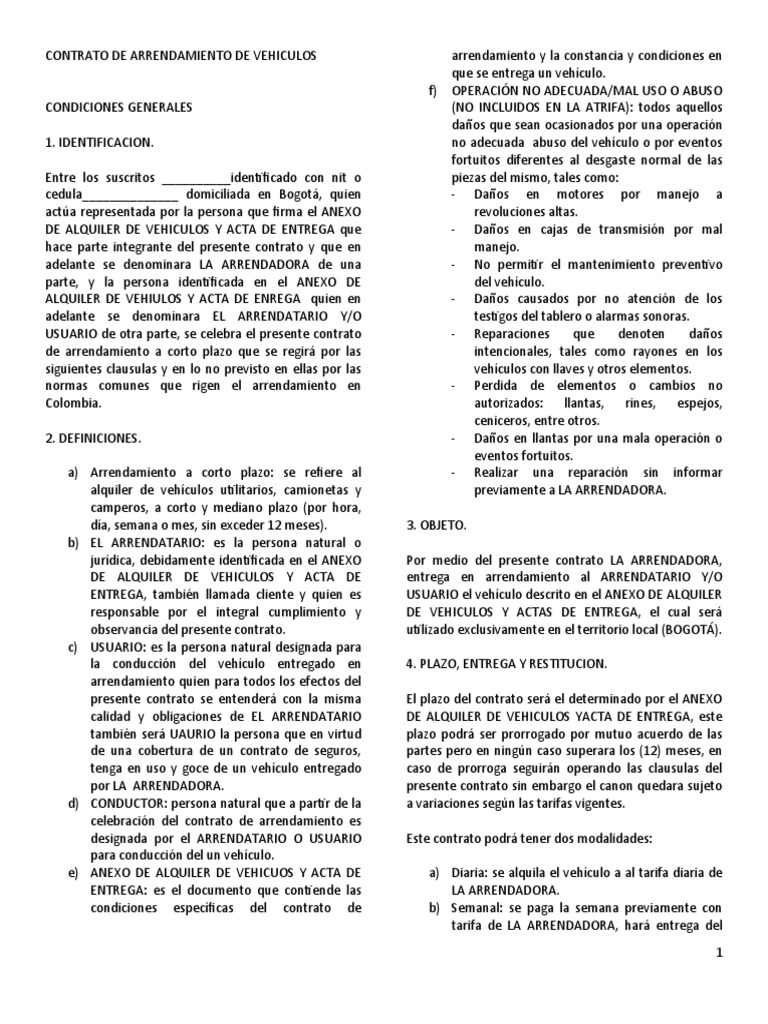 CONTRATO DE ARRENDAMIENTO DE VEHICULOS arrendamiento y la constancia y condiciones en