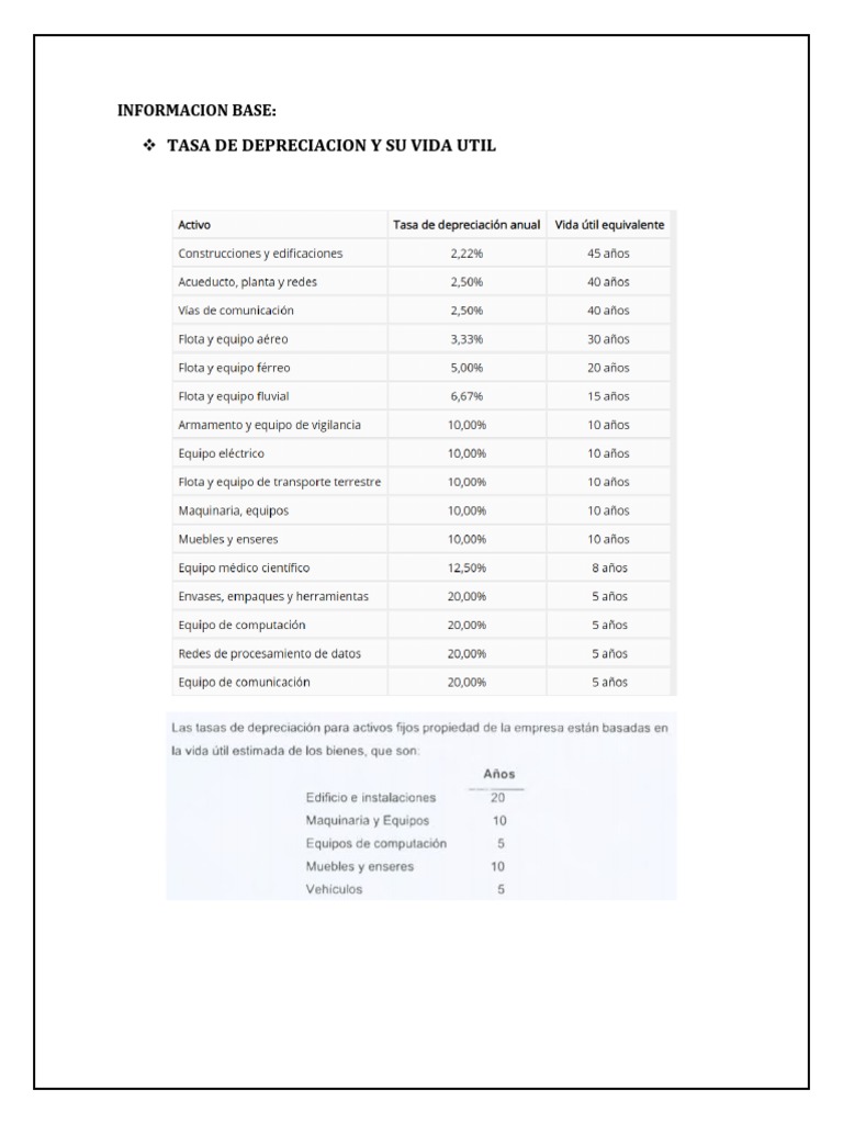TASA DE DEPRECIACION Y SU VIDA UTIL
