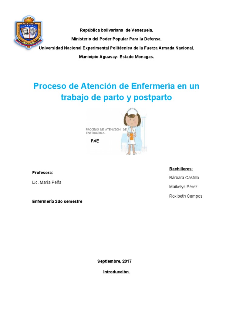 Aplicación del proceso de atención de enfermería en un trabajo de parto y