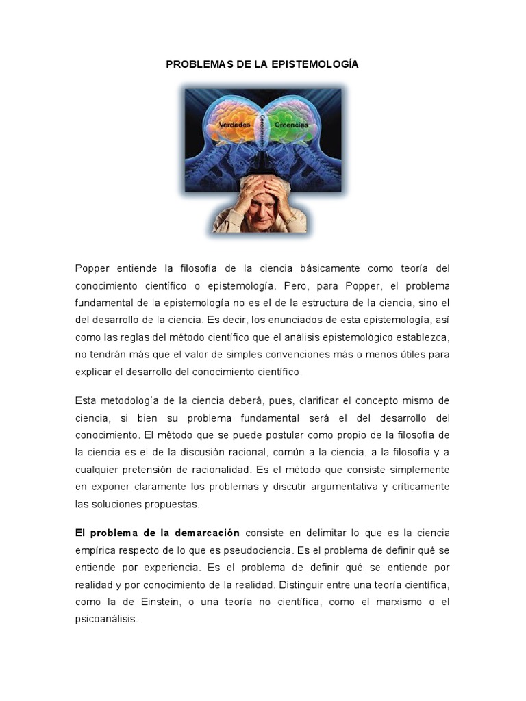 conocimiento científico o epistemología. Pero, para Popper, el problema