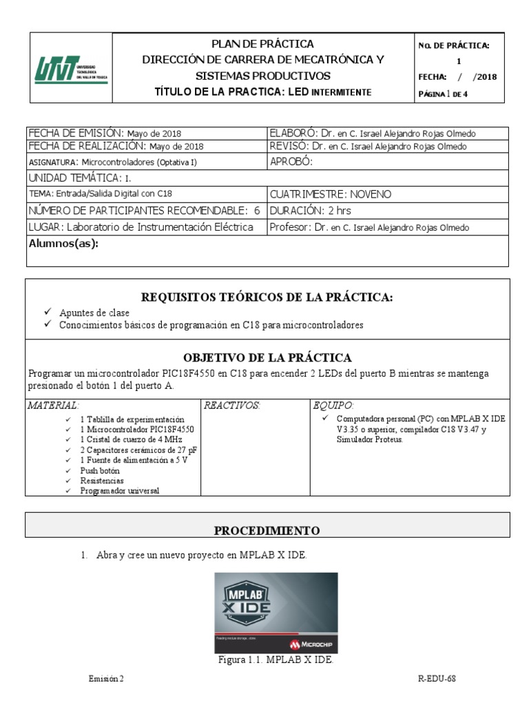 TEMA: Entrada/Salida Digital con C18 CUATRIMESTRE: NOVENO