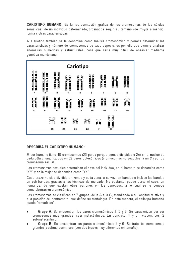 Al Cariotipo también se le denomina como análisis cromosómico y permite determinar las