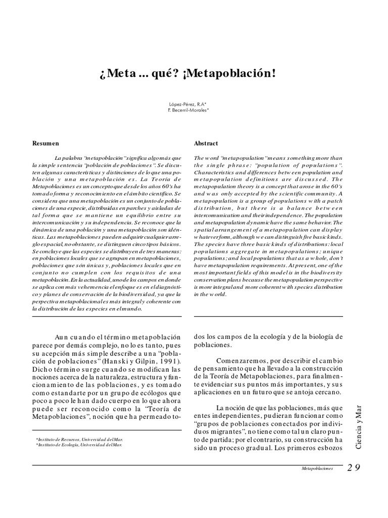 metapoblacional en el estudio de las poblaciones.