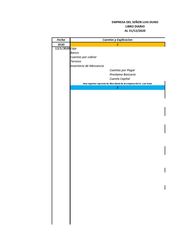 Para registrar Apertura de libro diario de la empresa del Sr. Luis Duno