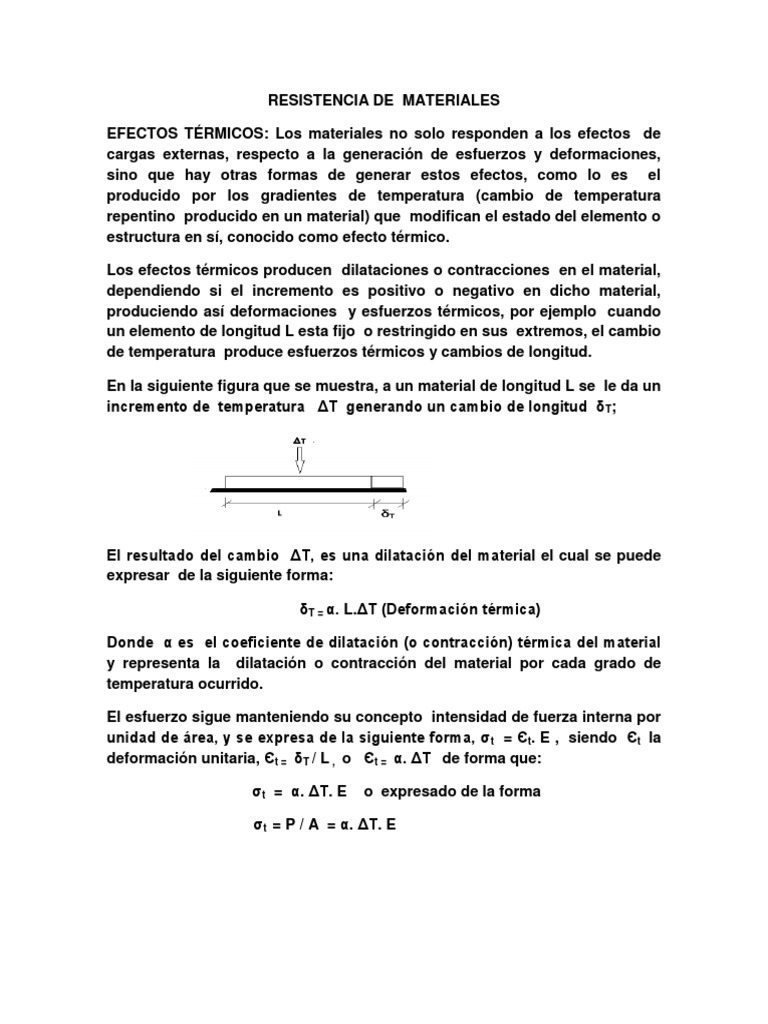 deformación unitaria, Єt = δT / L , o Єt = α. ΔT de forma que: