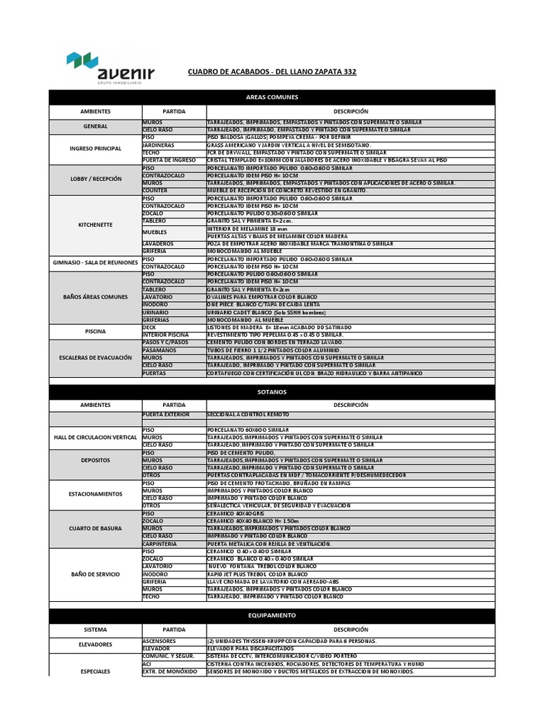 Especificaciones de Acabados de Construcción