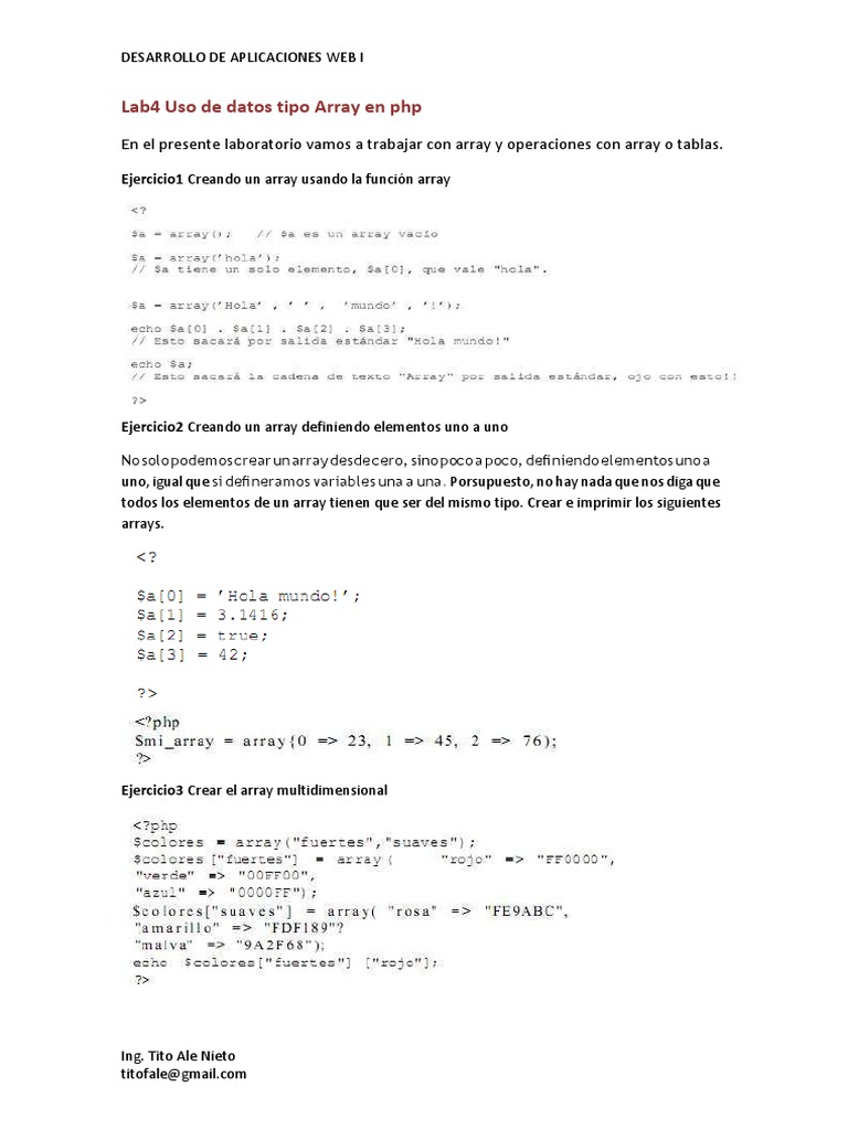 En el presente laboratorio vamos a trabajar con array y operaciones con array o tablas.