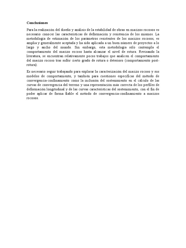 comportamiento del macizo rocoso hasta alcanzar el nivel de rotura. Revisando la